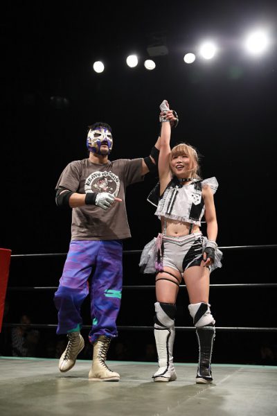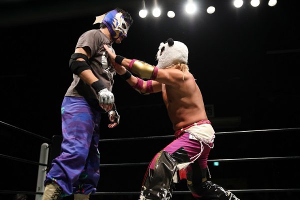 「これについてはですね、私はパンダを守る気満々で来たんですけど、ちょっと最初から様子がおかしいなと思ってたんです。肉体的ななんか毛並み的な問題でおかしいなと思ってたんですけど、実際パンダじゃなかったというところで、ちょっと動揺しまして、結局アレは私が勝ったのかな? よくわからない結末になっちゃったんですけど。ただ、カシンさんと闘わせてもらって、パンダのことを抜きにしてももっともっと闘いたいなって気持ちのまま終わっちゃったんで、こんどはシングルマッチがしたいです、と思ってます」――今後の展望は?