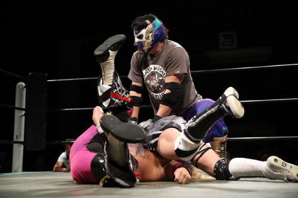 スターダム★アイドルズのGM、中野たむがパンディータとともにケンドー・カシンと対戦。カシンは「パンダじゃねえだろ、人間だろ」とパンダにクレーム。中野が握手を求めるとカシンが静かに応じる。カシンはパンダを握手に誘うが蹴りを入れる。ゴングが鳴るとカシンと中野が対峙。カシンが握手を求めると中野が両手で応じる。ロックアップから中野がヘッドロック。グラウンドにもっていこうとするがカシンがすぐに脱出。カシンが腕を取ると中野がアームホイップ。パンダがタッチを求める。カシンはパンダとの対戦を希望。パンダが入るとカシンが猛攻。パンダをコーナーに追い込むと顔面を踏みつけていく。カシンはエルボースマッシュから相手コーナーでも顔面を踏みつける。中野がカットするとタッチしてリングイン。ローキックの連打でカシンを倒すと頭部にドロップキック。中野がキックの連打からロープに振ってショルダータックル、側転ダブルニードロップ。パンダが入りカシンに打撃の連打もまったく効かず。カシンが一発で倒すとストンピングの連打、パンダは雌だと主張する。カシンはサブミッションにパンダを捕らえる。キャメルクラッチに移行するとマスクに手をかける。たまらず中野が乱入しダブルでクローズライン。パンダがバックを取るが中野のキックが誤爆寸前。カシンがマスクを剥がすと正体が佐野直と判明。中野は佐野にダイビングボディーアタック。カシンが覆い被さり、カシンの勝利が宣告された。カシンはレフェリーを場外に追い出し、「オマエの勝ちだ」と中野の手を上げる。中野はカシンの先導からコーナーに上がって勝利をアピール。中野が四方でアピールすると、いつのまにかカシンは去っていた。試合後、ステージではスターダム★アイドルズの住吉桃子がソロ曲「キス・ミー・ダーリン」の弾き語りをおこなった。