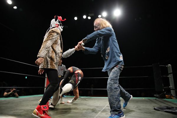 大仁田「アイドルと組んでどうすんだ、コノヤロー。はげたピエロじゃねえかコノヤロー。おい、おい、いつでもやってやるよ。だけどリングに上がってきてくれた勇気は認めるよ」
