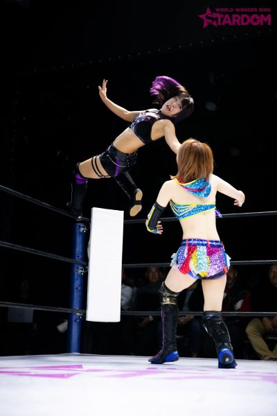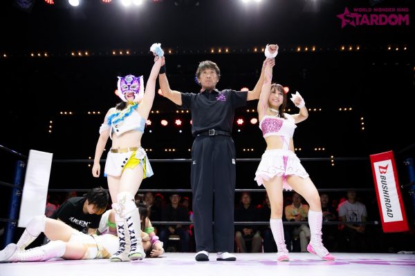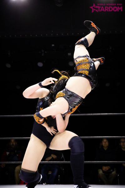 タッグリーグ戦にエントリーした里歩とスターライト・キッドが上谷沙弥&星野唯月組を迎え撃つ。昼の部ではキッドが8人タッグでAZMから勝利しアーティスト・オブ・スターダム王座挑戦をアピールするとともに、キッドとのチームでジャングル叫女&小波組が保持するゴッデス王座への挑戦も表明した。両タイトルマッチの実現は決定的だけに、キッドは里歩とのチームでさらなる結束強化をはかるつもりだ。一方、デビュー4戦目となる星野にとってはスタイル的にも里歩&キッドは目標となる選手だろう。また、星野と組む上谷は、早くも後輩を引っ張る立場に。フレッシュな闘いに注目だ。