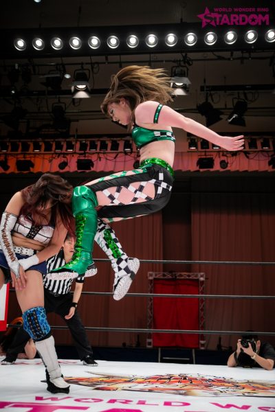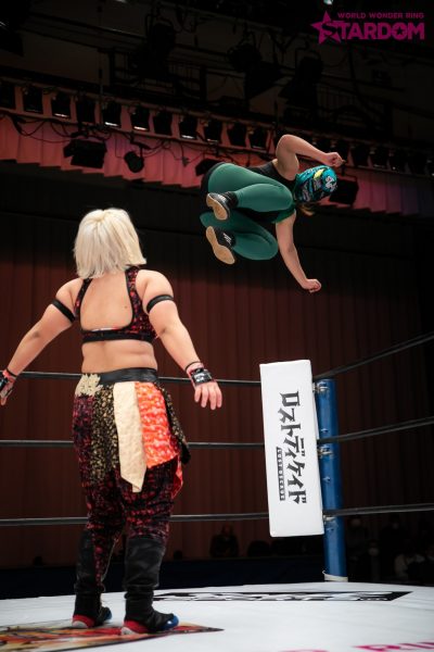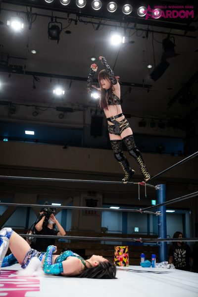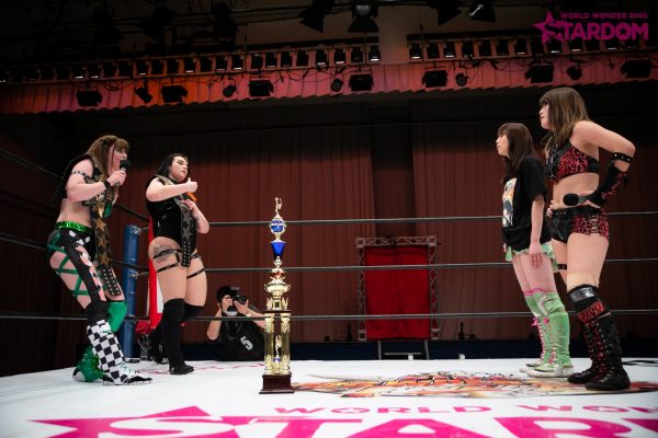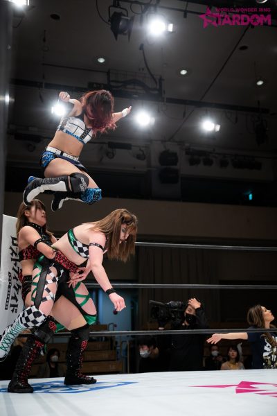 破りゴッデス・オブ・スターダム王座を奪取したビー・プレストリー&ジェイミー・ヘイターの大江戸隊が初防衛戦。相手は元王者でクイーンズクエストの渡辺桃&林下詩美である。この試合はタイトルマッチデあることはもちろん、遺恨対決ともなった。プレストリーがQQを裏切り大江戸隊へと走ったためだ。裏切られた桃と詩美にとってはベルト奪回とともにリベンジが課題だが…。