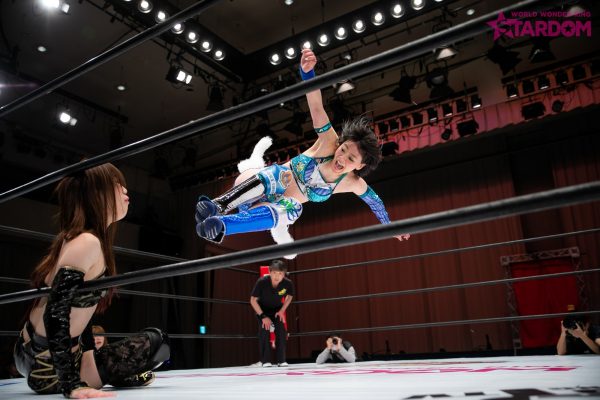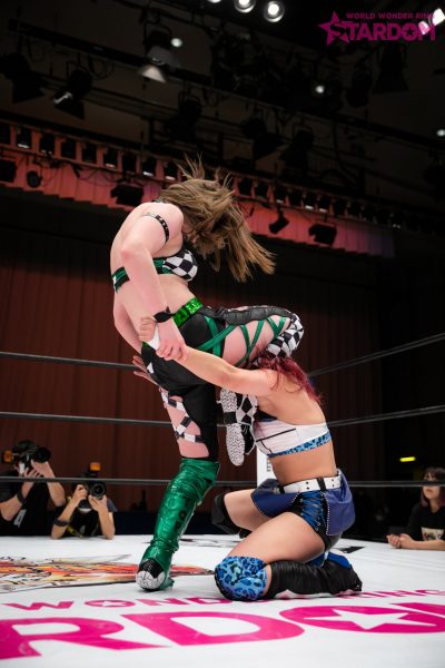 星輝ありさが白いベルト11度目の防衛に挑む。ここで防衛を果たせば紫雷イオを抜き、単独2位に躍り出る。渡辺桃が達成したV13まであと2と迫ることとなるが…。挑戦者は大江戸隊の刀羅ナツコ。引退した花月からは十手を授かり大江戸隊を任された。それだけに個人的にはもちろん、ユニットにもベルトをもたらせたい。このところファイトスタイルがよりいっそうラフになってきたナツコ。星輝の牙城を切り崩すことができるのか、それとも星輝が余裕のV11を達成するか!?