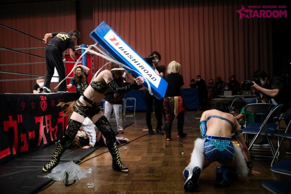 「もちろんね、ただでさえ、コロナ、病気のせいでスターダムの大会が何試合もボツになってて、そんなかでやっと、やっと久しぶりにね、見てるヤツらだってYou Tubeかもしれねえけど、ウチらのプロレスをようやく見れるってなって、ウチより客の方が下がってんじゃねえの? あんなヤツがもっててさ。楽しいと思わないでしょ。ロクに防衛戦もできねえんだから。首かなんだか知らねえけど、みんな誰だって痛いところもってやってんだよ。根性なしが」