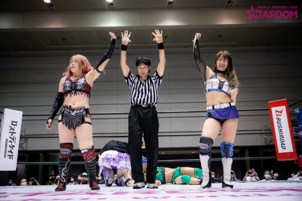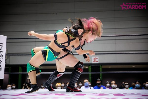 岩谷麻優&中野たむ組vsジャングル叫女&小波組は翌日のワールド・オブ・スターダム王座戦に向けての前哨戦。赤いベルトの王者・岩谷と挑戦者・叫女がどこまで手の内を見せるのか。2月から流れっぱなしのタイトルマッチに向けて、岩谷と叫女が火花を散らす。また、叫女&小波は7・26後楽園でのゴッデス・オブ・スターダム王座決定戦も決定。ビー・プレストリー&ジェイミー・ヘイター組が来日できない状態にあり防衛戦が不可能とあって王座は空位になってしまった。叫女としては2冠のチャンス。弾みをつけるためにも、この試合は落とせない。また、トーナメント1回戦を突破し白いベルトに王手をかけた中野にも注目。ジュリアとの決戦3日前、赤いベルトの王者・岩谷とのコンビでなにをつかめるか。