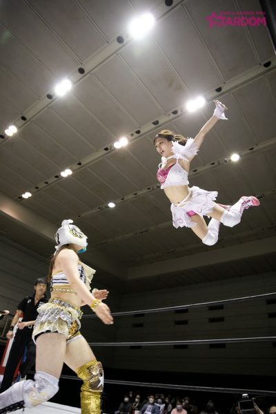10・3横浜武道館から参戦の“闘魂Hカップアイドル”白川未奈が、大江戸隊の鹿島沙希とシングルマッチでスターダム第3戦。白川は今シリーズ、中野たむとのチームでタッグリーグ戦に出場するが、公式戦では2戦目の新木場で鹿島と対戦するためこの試合が前哨戦にもなる。鹿島が大江戸隊の洗礼を浴びせるか、それとも白川が公式戦に向け弾みをつけるか。