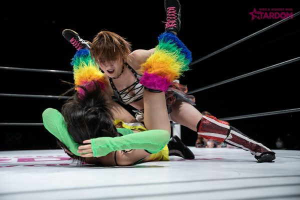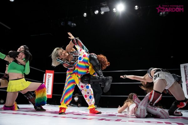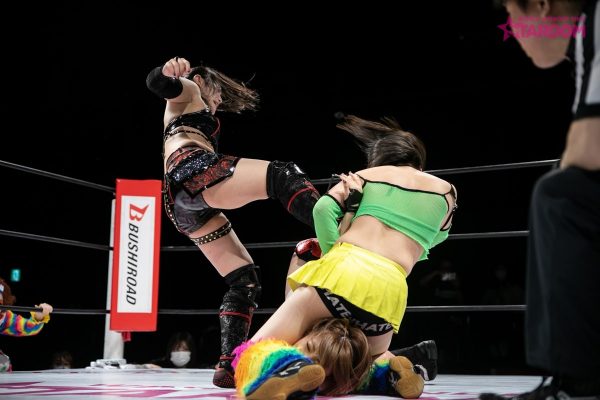 上谷とひめかが先発でロックアップ。ひめかが押し込むと上谷が反転しヘッドロック。ひめかがヘッドロックに切り返しロープに振られるのを拒否しグラウンドへ。上谷が切り返しビッグブーツもひめかがかわす。詩美と朱里が慎重に手四つ。グラウンドとなりバックの取り合い。詩美が手を取り立ち上げるが朱里がフロントネックロック。詩美がコーナーに追い込むが朱里が反転してハイキック。詩美がかわして突進。かわした朱里が押さえ込み。返した詩美がショルダータックル。朱里が上谷にサッカーボールキック。ロープに固定するとひめかも加勢する。朱里がカバーも上谷がクリアー。ひめかが上谷にヘアーホイップ、髪を束ねてマットに叩きつける。さらに滞空時間を取ってのボディースラムを連発。朱里がグラウンドにもっていくが上谷がエスケープ。朱里が腹部へのニーを連打、上谷が側転で翻弄しドロップキック。詩美が首里に向かって入るとひめかが乱入し合体攻撃、しかし詩美がかわして朱里の背中にドロップキック。詩美は朱里にアルゼンチンも朱里が切り返して変型卍固めからグラウンドで腕を固める。エルボーの打ち合いから朱里がミドルキックの連打で詩美を倒す。朱里は狙い澄ましてシャイニングスターカッター。しかし詩美がクリアーに成功。ひめかが詩美にショルダータックル連打から逆片エビ固め。ひめかがニーで突進、エプロンでは朱里が詩美を蹴り上げる。ひめかは詩美にアルゼンチン狙い。詩美が持ち上げようとするがひめかがこらえてラリアットの打ち合い。打ち勝ったのは詩美で、上谷がダイビングボディーアタック。ひめかと上谷がエルボーの打ち合い。朱里が背中を蹴って妨害し乱入、ダブルで上谷を攻め込む。ニーを前後で打つとひめかがニーアタック。ひめかの突進を詩美がカットし上谷がドロップキック。上谷が相手コーナーに上がりミサイルキック。上谷はフィニッシュを予告して突進もラリアットを食らう。ひめかがフィニッシュを宣言しアルゼンチン。そこから前方に叩きつけるが上谷が返す。ひめかはもう一度フィニッシュを宣下しランニングパワーボム狙い。上谷が切り返してビッグブーツ、詩美が再度スラムを放ち上谷がカバーもカットされる。上谷はひめかを起こして足を取るが朱里が1399。朱里とひめかが合体し重量級のファンタスティックフリップ。しかし詩美のカットが間に合う。朱里が詩美をバックドロップで排除。ひめかはランニングパワーボム。3カウントが入り、ひめかが上谷を破った。