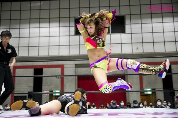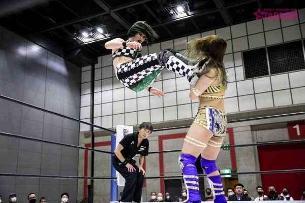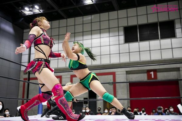 セミファイナルはSTARSから羽南&飯田沙耶&岩谷麻優vsDDMはジュリア&朱里&舞華。飯田と舞華が先発。ロックアップから舞華がヘッドロック。ショルダータックルは舞華が打ち勝つも飯田もやり返す。STARSが連係攻撃。羽南が舞華にドロップキック。ロープに走った羽南に舞華はケブラドーラコンヒーロー。今度はDDMが連係を決めて見せる。朱里が羽南にサッカーボールキック、串刺しのニー。ジュリアが羽南にスリーパー。STARSがカットに入る。ロープに走ったジュリアに羽南が払い腰。飯田がジュリアを踏み台にしコーナーの朱里と舞華に攻撃。飯田がジュリアに逆水平からダブルチョップ。朱里と舞華が入ってくるも飯田は二人をチョップで蹴散らす。さらにジュリアにはジャンピングダブルチョップからバックエルボーは2カウント。ジュリアが飯田にファルコンアロー。朱里が飯田にミドルキック。ロープに走った朱里にスパインバスター。岩谷が朱里にドロップキック。ロープにもたれたDDMにSTARSが低空ドロップキック。岩谷が朱里の蹴りをキャッチしてドラゴンスクリュー。朱里が岩谷を投げっぱなしジャーマン。岩谷も朱里に投げっぱなしジャーマンから両者のハイキックが決まりダウン。羽南と舞華にチェンジすると舞華がショルダータックル。羽南はエルボー連打から大外刈り。飯田がミサイルキック、岩谷がバズソーキック。羽南のブロックバスターホールドは朱里がカット。DDMが連係攻撃。舞華のブレンバスター。両軍入り乱れる。舞華のラリアットから山茶華で3カウント。