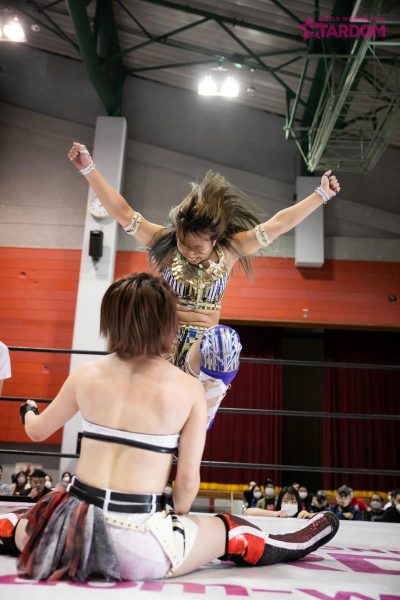里歩&ゴキゲンです☆はゴッデス・オブ・スターダムタッグリーグ戦にエントリーしたチーム。対するは上谷沙弥&レディ・C組。レディ・Cは11・14後楽園で飯田沙耶を相手にデビューも翌日の仙台大会を体調不良により当日になって急きょ欠場。よってこの試合が復帰戦となる。第2戦で初めてのタッグマッチ。パートナーも対戦相手も初めての中で身長177センチの爪痕を残すことができるか。