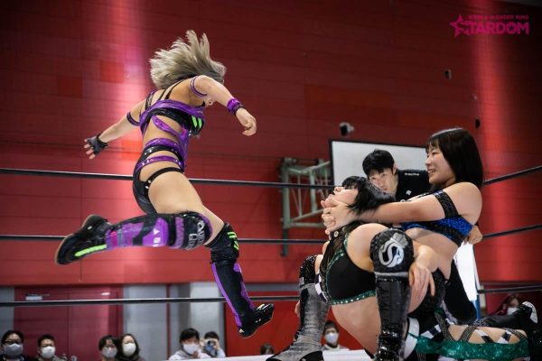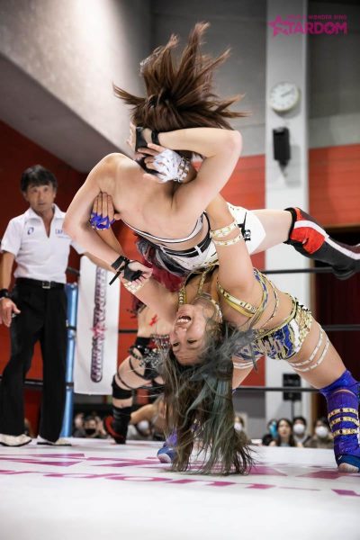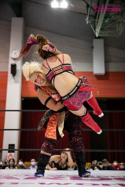 朱里&舞華&ひめか組vs刀羅ナツコ&鹿島沙希&吏南(栃木県出身)組の6人タッグマッチは、ドンナ・デル・モンドvs大江戸隊の図式である。朱里は11・15仙台でビー・プレストリーを破りSWA世界王座奪取、アーティスト・オブ・スターダム王座こそ自身が敗れて失ったものの、すぐにリベンジを果たしスターダムでのシングル王座初戴冠をやってのけた。舞華は同大会で飯田沙耶の挑戦を退けフューチャー・オブ・スターダム王座を死守。こちらも王者として波に乗っている。ひめかは渡辺桃にシングルで敗れはしたが、こちらもシングルのベルトを狙える位置にいることは間違いない。とはいえ、今回の相手はアーティスト・オブ・スターダム王座をDDMから奪った大江戸隊(ナツコ&鹿島)で、凶器&反則攻撃は必至だろう。DDMはアーティスト王座奪回に乗り出すか。両ユニットの駆け引きに注目だ。