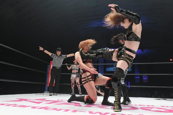 大江戸隊の奇襲で試合がスタート。まずはルアカを捕まえ小波、ナツコが次々と攻撃。ルアカがクロスボディーアタックを見舞い、小波が入ってくると2人を蹴散らす。里歩はナツコに619、ダイビングボディーアタック。里歩が突進するとナツコがショルダータックル。ナツコが串刺しエルボーアタックからキャノンボール。里歩が返すと、小波がミドルキック連打。小波の突進に里歩が丸めこんでフットスタンプ、フィッシャーマン。ルアカが小波にショルダータックル連発。小波が背後に回りスリーパーから腕十字。ルアカがエスケープするが大江戸隊が串刺し攻撃の連続。ナツコが里歩、小波がルアカを捕獲もロープに振ったのちにキックを食らう。里歩とルアカが連係攻撃で小波を追い込む。ルアカは小波の顔面にビッグブーツ連打。ルアカはフィッシャーマンを決めるが2カウント。ナツコがイスでカットし小波が腕を取る。ナツコが里歩のカットを妨害すると、ルアカがトライアングルランサーにギブアップ、小波が勝ち名乗りを受けた。