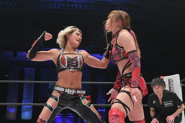11・15仙台で林下詩美が岩谷麻優を破りワールド・オブ・スターダム王座を奪取、試合後に次期挑戦者として名乗りを挙げたのはDDMのジュリアと朱里だったが、詩美が初防衛の相手に指名したのがクイーンズクエスト同門の渡辺桃。この流れによりジュリアと朱里の対戦ムードとなり、お互いのベルトが懸けられる2冠戦となった。ジュリアは白いベルト4度目の防衛戦で、朱里には獲得したばかりのSWA世界王座の初防衛戦。両者のシングルマッチは今年の「シンデレラ・トーナメント」で実現。このときは朱里がOTRで苦杯、ジュリアは優勝への足がかりを掴んだ。果たして2本のベルトが統一されるのか。同門対決の行方は…?