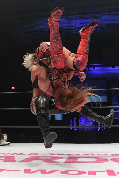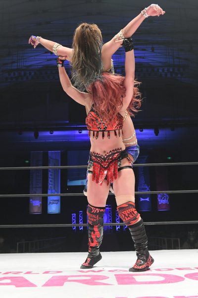 ※ワンダー・オブ・スターダム第14代王者のジュリアが4度目の防衛に成功するとともにSWA世界選手権王者の朱里が初防衛に成功