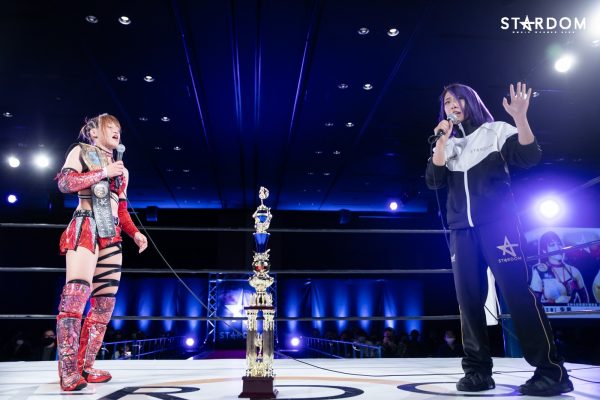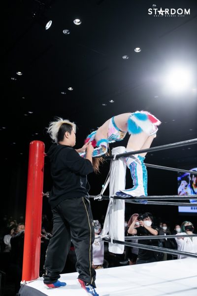 「メチャクチャすごいなってそこは思いますね。思いますけど、やっぱり、いま、これからもですけど、負けるわけにはいかないんですよね。どんどん上に行かないと行けないし、スターダムに所属して2ヵ月経ってここで負けたら意味がないというか、やっぱり上に行くためにここはキッチリと勝っていきたいと思います。あと、最後に出した技、朱雀、青龍の次、玄武。あれが私の新しい技、玄武です」
