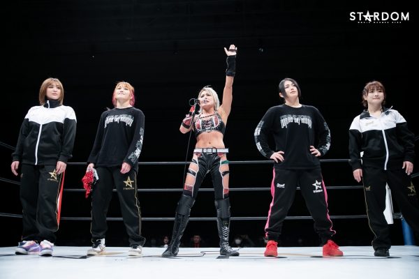 ジュリア「飯田、私が日本武道館で防衛したら真っ先にオマエを次の挑戦者に指名してやる。(DDMがリングイン)3・3日本武道館まで、今日と、残りは明日の1試合。我々ドンナ・デル・モンドが、全員ベルトを奪う姿まであとわずか。ということで、明日もここで私たちは試合をやる。スターダム10周年日本武道館大会に向けての明日は、大事な大事な一日となると思いますので、ぜひ今日来ていただいた諸君、明日も来れる方はぜひ楽しみにしていただけたらなと思っています。なつぽい、ひめか、舞華、朱里、そしてジュリア、我々世界に弾けるドンナ・デル・モンド、アリーベデルチ、またな」