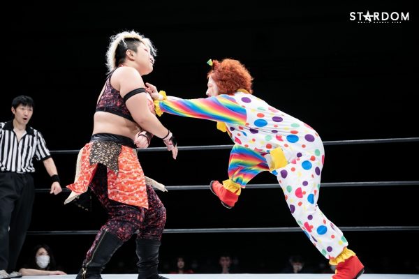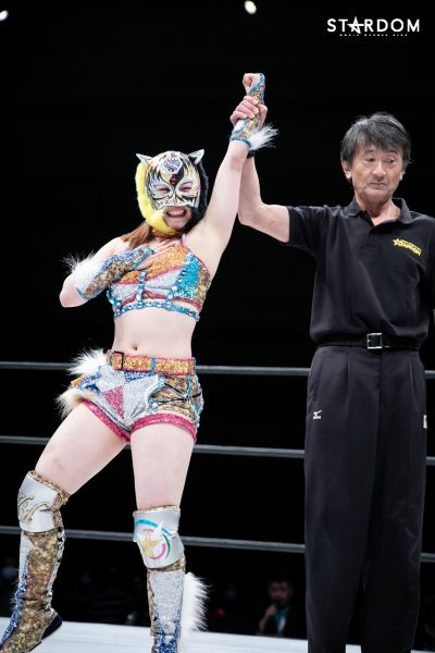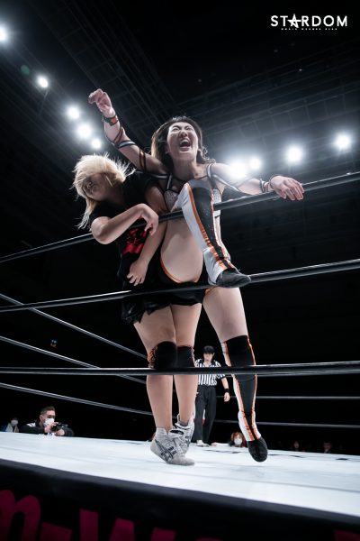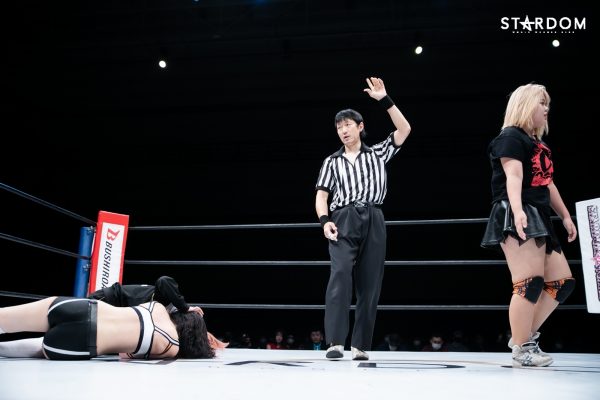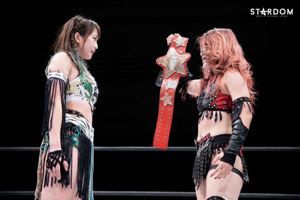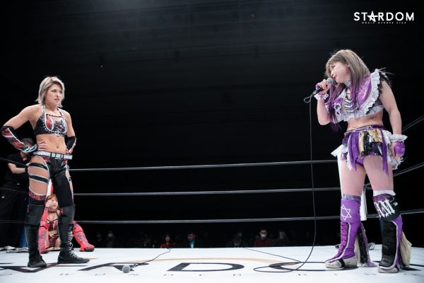 上谷「この未来のスターダムの私が3月3日、日本武道館で未来のスターダムからスターダムになる、私が林下詩美から絶対に絶対に絶対に赤いベルトを取ります。飛んで飛んで飛びまくる。そして、私がスターダムの頂点に立つ!」