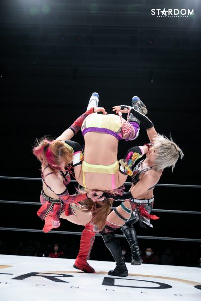 ジュリアと中野が先発で視殺戦。グラウンドの攻防でスタートし、バックの取り合い。ジュリアが腕を取り捻りあげると中野がヘッドロックに切り返しグラウンドに持っていく。中野が頭部への蹴りを連発。ウナギが朱里を落としてから中野と合体、ダブルのビッグブーツからウナギにストンピング連打からヘアーホイップ。顔面を踏みつけると控えの中野がクレームをつける。ジュリアはウナギにネックブリーカードロップ。朱里がウナギにミドルキック、サッカーボールキック。ウナギが返すと、朱里は中野を落としてからジュリアを呼び込み、連係で攻めていく。朱里がウナギのエルボー連打を受けて立つ。朱里はニー連打から突進。キャッチしたウナギがスパインバスター。中野が朱里にネックブリーカードロップ。朱里が背中へのキックからジュリアと合体。しかし中野がまとめてDDT。朱里が返すと、背後からニー、エプロンからもニーをぶち込み、スタンディングギロチンを投下する。ジュリアが中野へミサイルキック。2発目狙いは中野が上がり、コーナー上で張り手の打ち合い。中野はカカト落としで落とすとエプロンに出てバックを取る。ジュリアがこらえてエルボー連打。バックドロップを狙うが中野がロープを掴んでこらえる。ジュリアはエプロン越しにネックブリーカー。10分経過。ジュリアはエプロンでビッグブーツも中野がかわしてジャーマン。両者リング下へ落下。両者リングサイドで殴り合いも19カウントで生還する。髪をつかみ合いジュリアが中野の髪を抜いていく。中野もやり返しジュリアの髪を投げ捨てていく。中野の蹴りでジュリアがダウン。中野も倒れ両者ダウン。ウナギが入ってジュリアを攻撃。ジュリアがギロチンを返すとウナギは大ふへん固め。朱里がカットに入ると中野がスピンキック。ウナギと中野が2方向で場外プランチャ。ウナギがジュリアをリングに入れてマッドスプラッシュ。しかし朱里のカットが間に合う。朱里は中野を排除しウナギを捕獲、ジュリアがビッグブーツ。朱里とジュリアで前方に叩きつける大蛇(おろち)。これで3カウントが入り、ジュリアがウナギをフォールした。
