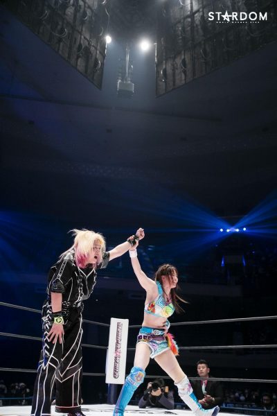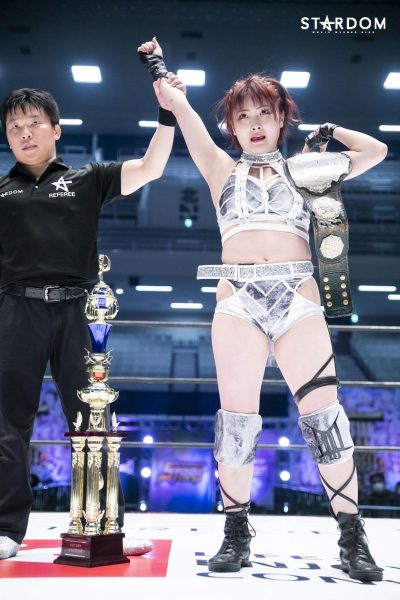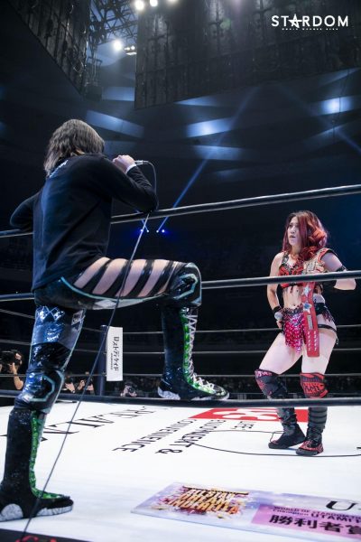 「ありがとうございました。レジェンドがたくさん出るリングで勝ち残れて本当に嬉しいです。スターダム10周年ということで、わたしはまだスターダムに上がらせてもらって4カ月なんですけど、これから11年以降のスターダムを作っていけるようにしっかり頑張っていきたいと思います。みなさんぜひぜひ、応援をよろしくお願いします」