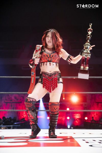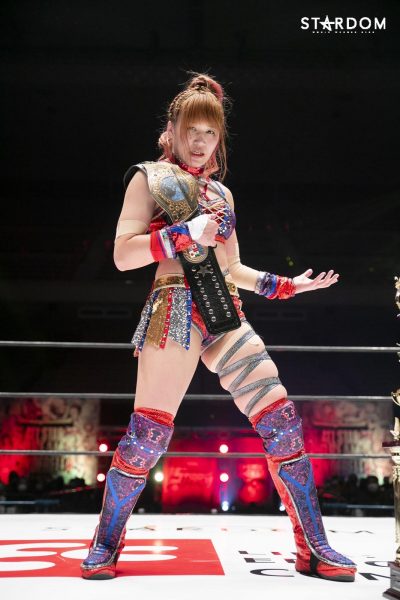 「赤いベルトの挑戦、未来のスターダムからスターダムになるって言っておきながら、スターダムになることができませんでした。でも、こうやってベルト戦で赤いベルト戦を闘い抜けたことはホントに自分のなかで糧にできると思います。これからもっと自分の武器を磨いていって、未来のスターダムからスターダムになれるようにもっともっと努力していきたいと思います」