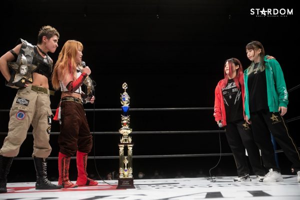 「そうですね。やっぱり明日のアーティスト・オブ・スターダム防衛記録を伸ばして未奈ちゃんと闘って、やっぱりたむさんがすごいコズミックエンジェルズで活躍というか強さをつけているので2人もここで止まっていられないので、もっともっとベルトを取ってどっちかが2冠になります。いや、私がなりますけど」