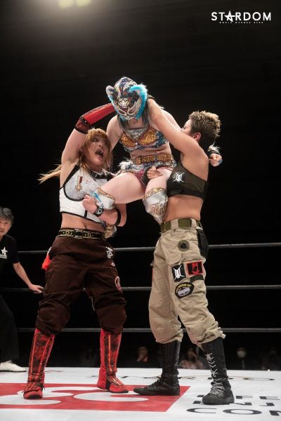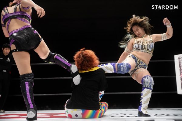 キッドが岩谷の背中を叩いて先発に送り出す。DDMは朱里が先発。慎重な探り合いから朱里がグラウンドに持っていく。首の取り合いから岩谷がバックにまわるが朱里がヘッドロックに切り返す。岩谷も切り返してグラウンドで上になる。岩谷が払いのけてブレイク。朱里が腹部へのニーを連打するとジュリアと合体のドロップキック、エルボードロップ。ジュリアが岩谷を高々とボディースラム。岩谷がジュリアを自軍コーナーに引き込みキッドを呼び込むと串刺し攻撃のダブルからドロップキックで競演。キッドがジュリアにボディースラムからフットスタンプ。ジュリアが返すと岩谷が朱里に見せつけるようにサッカーボールキック。朱里がカットし岩谷に向かっていく。キッドがカットし岩谷がジュリアの腕を取る。キッドは控えの朱里を威嚇。岩谷が自軍コーナーへジュリアを連行しキッドに託す。キッドがジュリアにアームホイップ、逆片エビ固め。そこへ岩谷がスライディングキック。朱里がカットすると岩谷が場外に投げ捨てる。キッドがジュリアをかわすがジュリアがロープに乗せてネックブリーカー。5分経過。朱里が入り、キッドにドロップキック、ニーアタック。コーナーに上がるとキッドへスタンディング式ダイビングギロチン。キッドが「なめんな!」とネックブリーカー。朱里と岩谷がエルボーの打ち合い、岩谷がドロップキック。朱里がミドルキック連打、フロントネックチャンスリードロップ。岩谷が返すと、朱里は抱え上げて山折り。朱里の突進に岩谷がトラースキック。両者ダウン状態からタッチをかわす。キッドがジュリアにエルボー連打。ジュリアも応戦しエルボー合戦。キッドが連打するとジュリアが受けて立つ。ジュリアの顔面蹴りもキッドが向かっていく。ジュリアがドロップキックも2カウント。ジュリアはキッドにフェースロック。岩谷が2人まとめてアームホイップ。STARSが619、その場跳びムーンサルトプレスで競演。キッドがコーナーに上がるとジュリアも上がる。岩谷が朱里を投げるとジュリアがコーナーからキッドをエプロン越しにフロントスリーパー。キッドが脱出し雪崩式カサドーラで飛びつき叩きつける。10分経過。キッドがフィッシャーマンもジュリアがクリアー。キッドがジュリアにテキサスクローバーホールド。朱里がカットに成功。岩谷が朱里を場外に送り出すとキッドがプランチャ、岩谷がトペで競演。STARSがジュリアへトップからの連係。岩谷がダイビングフットスタンプ、キッドがトップからのムーンサルトプレスも朱里がジュリアを救出。キッドがテキサスクローバーをジュリアに決める。朱里がまたしてもカット。しかし岩谷が場外に追い出し、キッドがジュリアを絞め続ける。ジュリアがロープに逃れると、キッドは飛びついて旋回してのタイガー。これもまた朱里がカットに間に合う。岩谷が朱里を場外へ。キッドはマウントパンチの乱れ打ち。張り手も見舞って「こんなもんか!」と挑発。引き起こすと朱里が介入してトラースキック。岩谷がカットし全員がダウン。15分経過。ジュリアがキッドへバックドロップ。朱里とジュリアが合体で大蛇を決める。朱里はジュリアに「決めろ」と指示。岩谷がコーナーに上がるとジュリアが雪崩式、朱里も合体で岩谷を叩きつける。ジュリアは朱里とキッドを担ぎ上げる。キッドが逃れて2人にエルボー連打。ジュリア、朱里が顔面を蹴り上げジュリアがヘッドバット、朱里とジュリアが大蛇。しかし岩谷がカットする。ジュリアがキッドにファルコンアロー。キッドが返すと、朱里がバズソーキック、ジュリアがノーザンライトボム。3カウントが入りジュリア組の防衛となった。