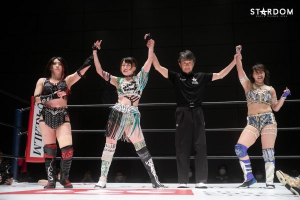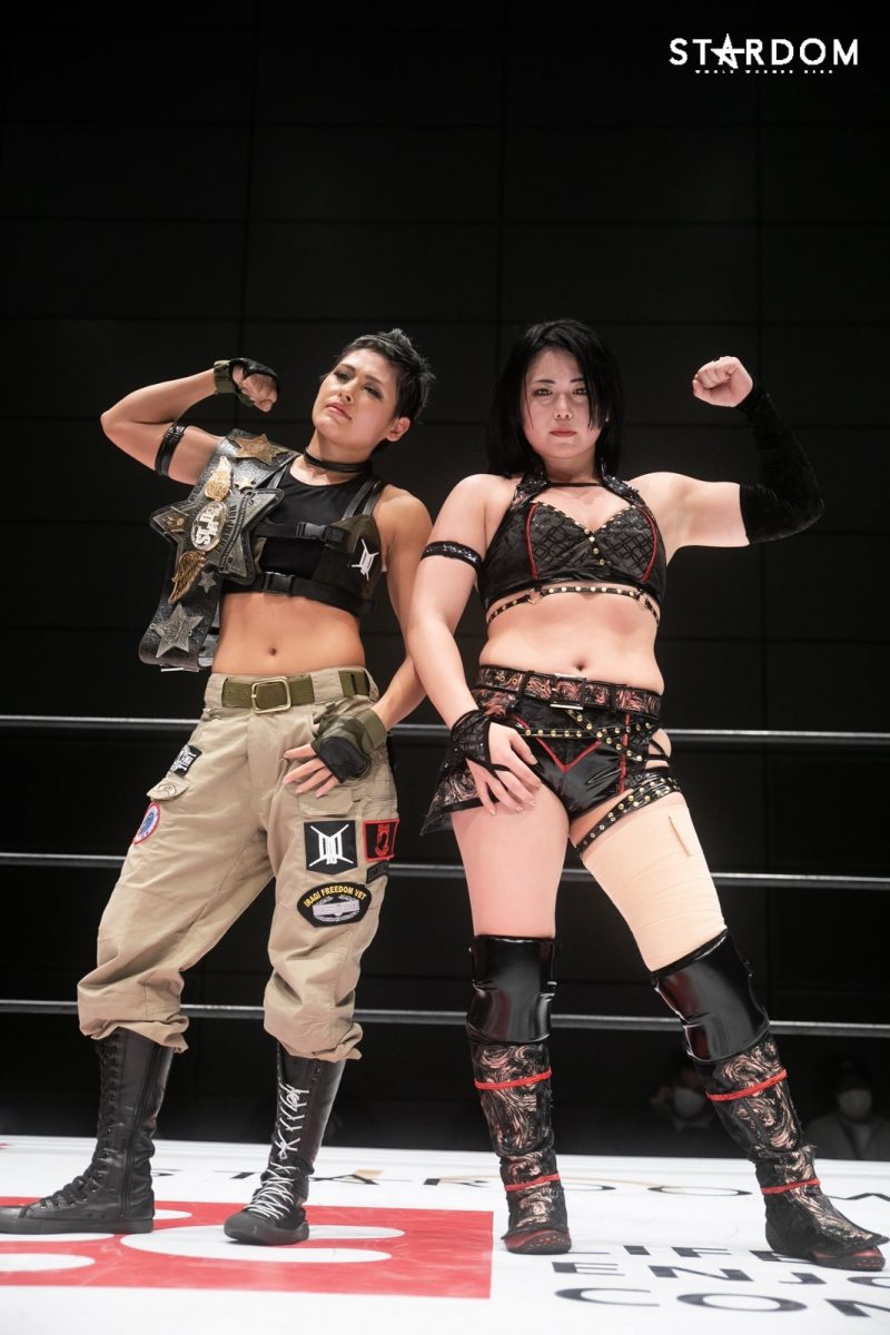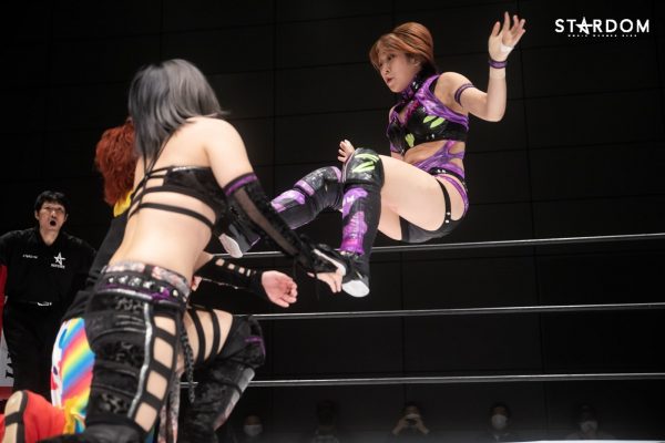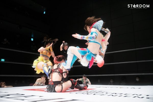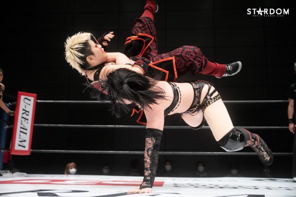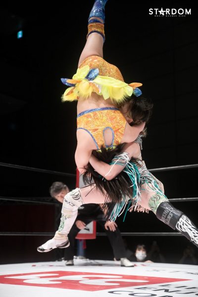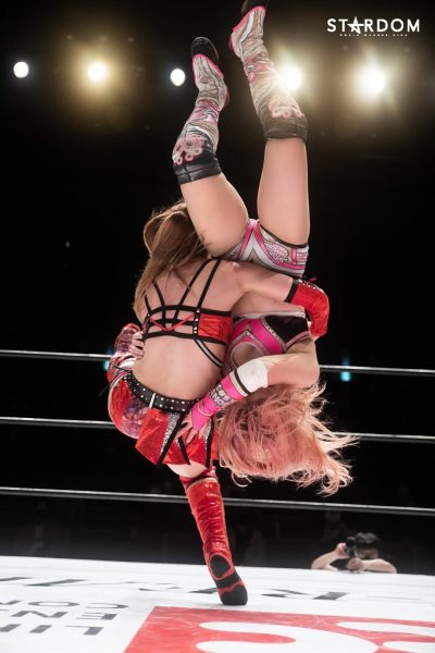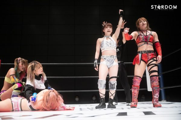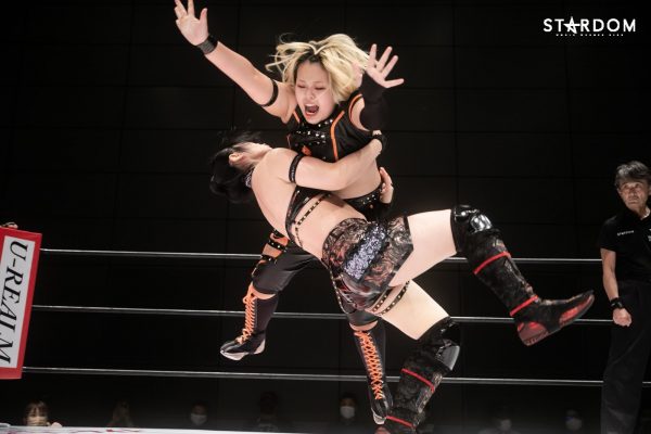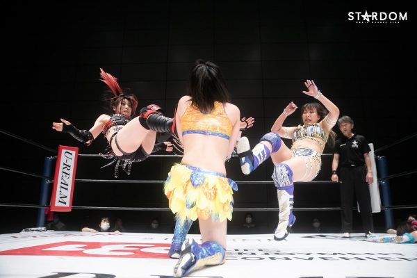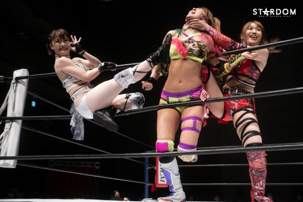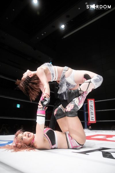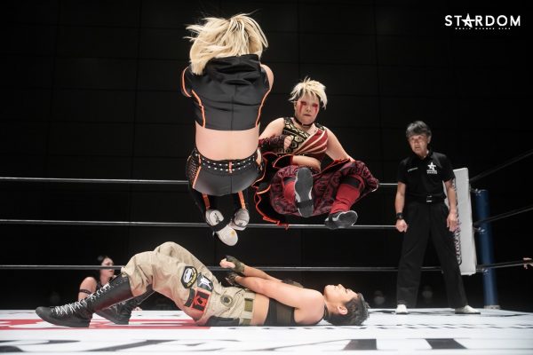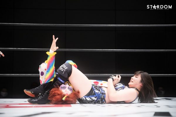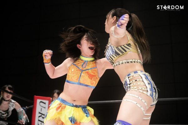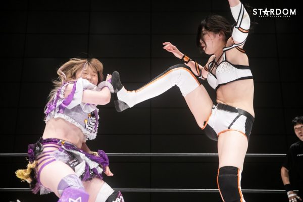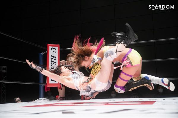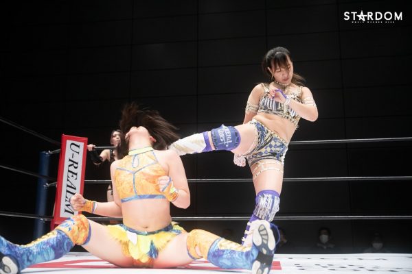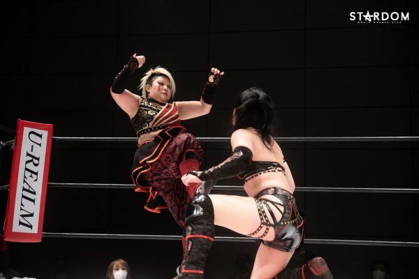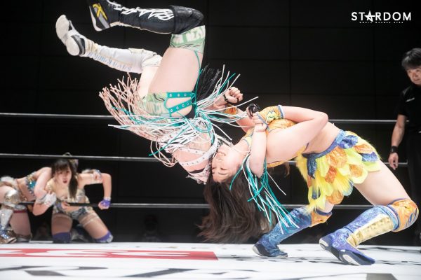 朱里となつぽいのドンナ・デル・モンド“姉妹”タッグがアーティスト・オブ・スターダム王者のCOSMIC ANGELS白川未奈&ウナギ・サヤカ組と対戦。現在、DDMの朱里がSWA世界&ゴッデス・オブ・スターダムの2冠王で、なつぽいはハイスピード王者。対する白川とウナギはアーティスト・オブ・スターダム王者で、フューチャー・オブ・スターダムの新王者を決めるトーナメントで1回戦を勝ち抜いた。ノンタイトルながらも王者のそろったタッグマッチで勝利を飾るのは、どちらのチームか?