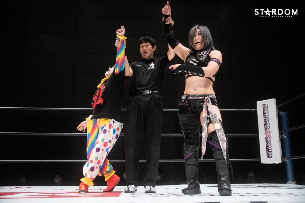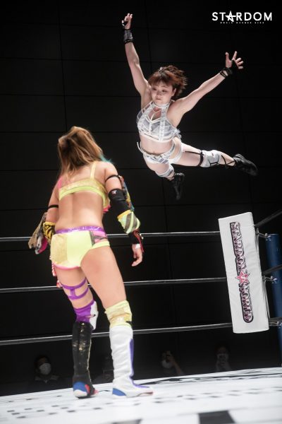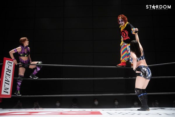 アーティスト・オブ・スターダム王者コズエンの白川とウナギがロープを引き上げて中野を迎え入れる。中野から握手を求めレディも両手で応じ、ゴング。ロックアップから中野が腕を取りにいくとレディも取り返して応戦。中野が側転して取り返し腕を絞り上げる。レディがヘッドロックにいくと中野がロープに振るがショルダータックルで吹っ飛ばされる。中野が返すと前蹴りからネックブリーカードロップ。中野はレディの左脚にストンピングの連打から捻りあげる。レッグロックで絞り上げながらブリッジ。しかしレディがロープに逃れる。中野はレディの左脚に全体重を乗せるとダブルニードロップ。レディが立ち上がりエルボーを打つと中野が受けて立つ。中野はロープに振るがビッグブーツを食らう。レディが河津落としを狙うと中野がこらえる。中野がエルボーを打つとレディも連打でやり返す。レディがボディースラムを狙うが中野が切り返してバックを取る。スピンキックをかわして中野が河津落とし。レディは「決めるぞ!」と絶叫しチョークスラム狙い。中野がこらえてグラウンドのサブミッションへ。レディがエスケープすると中野はニーアタックからコーナーに上がりダイブ。かわしたレディがビッグブーツを連打。しかし3カウントには至らず。レディは中野を立ち上げてチョークスラムを決める。しかし中野の肩が上がる。レディはエルボー連打からコーナーに追い込み首をつかみながらトップロープに上げる。そこから投げを打とうとするが中野が回避。レディの突進に中野がハイキック。レディが返すと、中野がバイオレットシューティング。レディが返せず3カウント。中野の勝利となった。