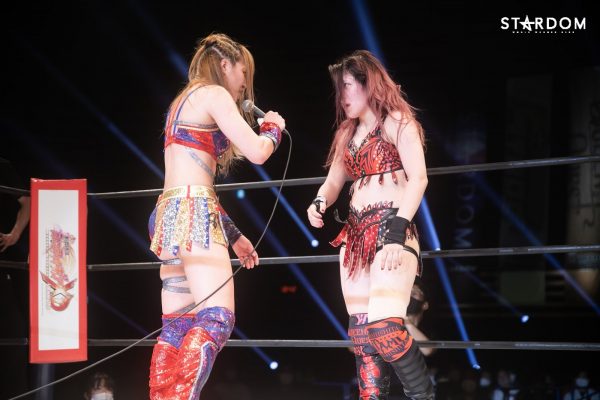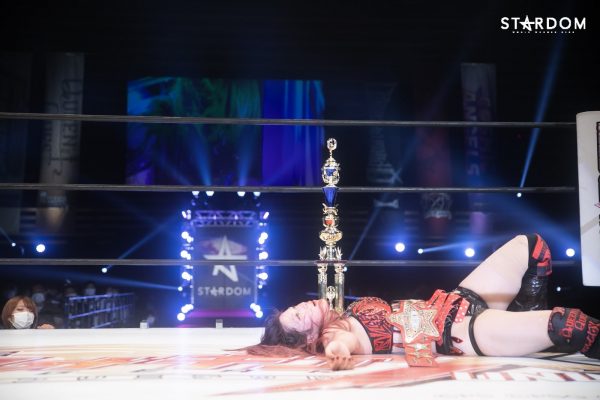 上谷「シンデレラ・トーナメント2021、優勝することができました! 今日で私は、未来のスターダムから、シンデレラへとなったとうことで、これからは正真正銘のスターダムを目指していきたいです。ここまで来るまでにいろいろありましたが、私はプロレスに出会えたことが運命だと思ってます。そして、たむさん、私は白いベルトに挑戦したいです。ぜひよろしくお願いします!」