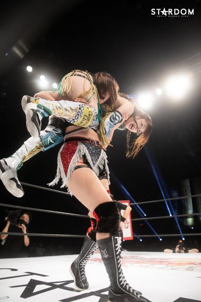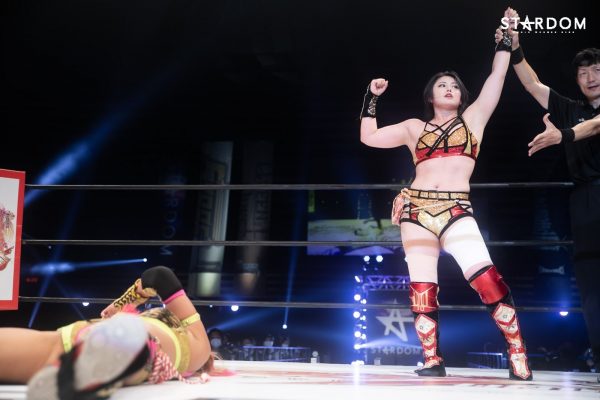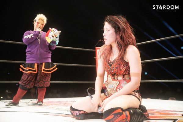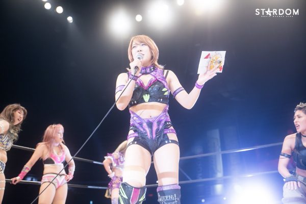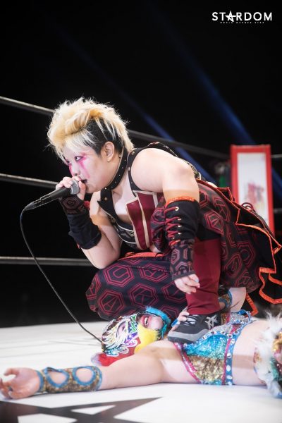 「ハイ。いままでずっと未来のスターダム、未来のスターダムとみんなの耳が痛くなるほどに言ってきたと思うのですが、今日で未来のスターダムと叫ぶのは、今日は叫んでいないですけど、シンデレラとなったのでもう未来のスターダムとは叫びません。次に叫ぶときは私はスターダムだと叫びたいと思います」