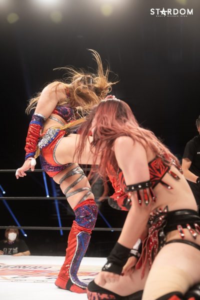 林下詩美のワールド・オブ・スターダム王座に朱里が挑戦。詩美は昨年11・15仙台で岩谷麻優を破り赤いベルトを初戴冠。以来、渡辺桃、舞華、上谷沙弥、ビー・プレストリーを破り4度の防衛に成功している。直近の2試合ではセミファイナルに組まれたが、スターダム頂点の王座戦がビッグマッチのメインイベントに帰ってきた。朱里には昨年10・3横浜以来、2度目のチャレンジ。横浜で敗れた朱里は赤いベルトを獲得するためにスターダムに入団、所属選手となった。その朱里は現在、SWA世界シングル王座と、ジュリアとのタッグでゴッデス・オブ・スターダム王座を保持しており、頂点王座の獲得は同時に3冠王へのチャンスでもある。詩美がベルトを守り抜き、ワールド王座を再びメインの定位置に戻すのか、それとも朱里が初戴冠を果たし宣言通りに「朱世界」への扉を開くのか。2021年下半期の行方を左右する大一番だ。