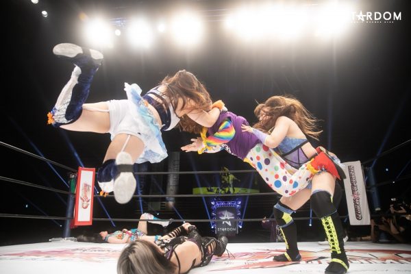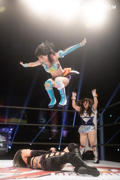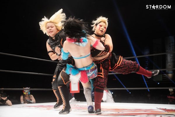 ゴングと同時に吏南と妃南がエルボーを打ち合う。レディが加わろうとすると姉妹が阻止して左右からドロップキックを決める。妃南がキャメルクラッチに入ると吏南がドロップキック。吏南は妃南にヘアーホイップ。妃南の背中に吏南が串刺しドロップキック。レディが妃南と吏南にビッグブーツの連打。レディが吏南をカバーするが2カウント。レディの河津落とし狙いを吏南がカットし妃南が柔道殺法、吏南に見舞うと、レディにSTO。妃南がレディの上に吏南をボディースラム。妃南はレディにブレーンバスターの構え。レディが2人まとめて串刺しビッグブーツを狙うがかわされてしまう。吏南と妃南がレディをカバーの連続。吏南と妃南が再びエルボーを打ち合う。レディが吏南に河津落とし。引き起こすとチョークスラムを決める。しかし背後から妃南が外道クラッチへ。レディが妃南にエルボー連打もマットに叩きつけられる。STOを決められたレディだが2カウントで肩を上げる。妃南はフィニッシュを宣言しスタンプホールド。しかし吏南が割って入り妃南を丸め込む。これで3カウントが入り、吏南が妃南を破った。