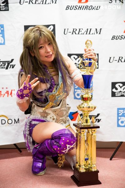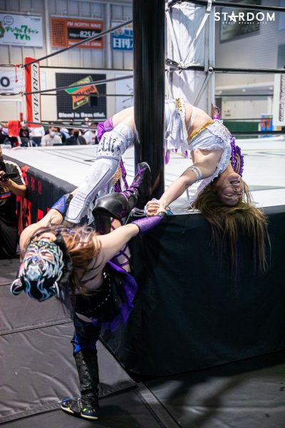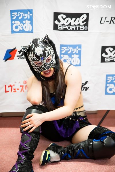 上谷「私たちアフロディーテ、あの(朱里&ジュリア組の)アフロじゃないんだよ! 私たちアフロディーテ、明日この札幌でゴッデスのベルトに挑戦します。私たちを甘く見ないでください。私たちがアリカバを倒してゴッデスのベルトを巻きますので、応援よろしくお願いします!」