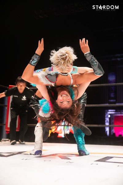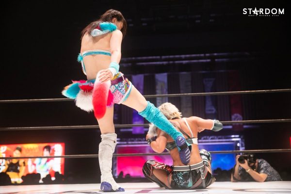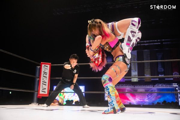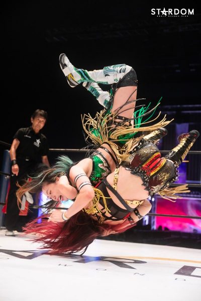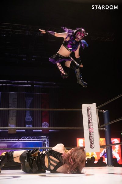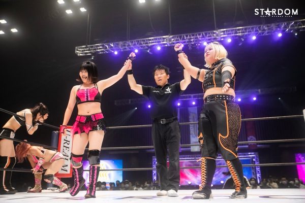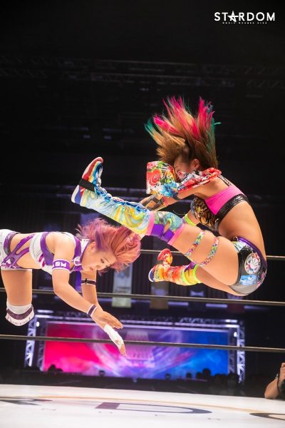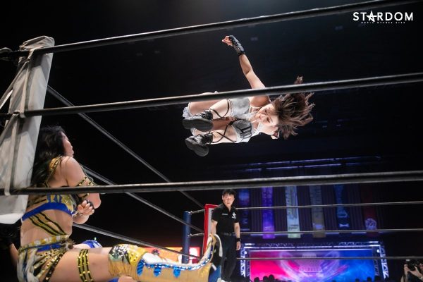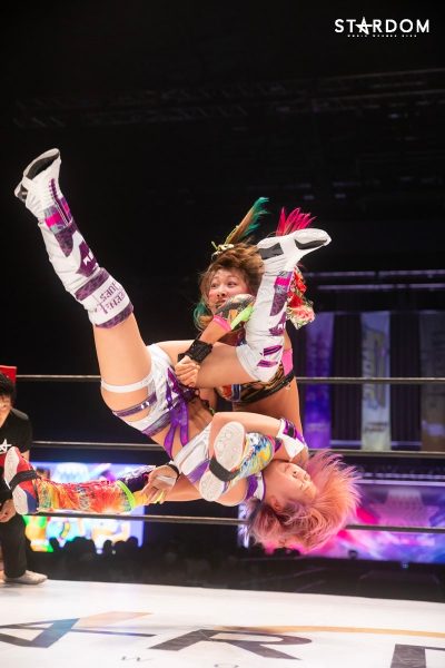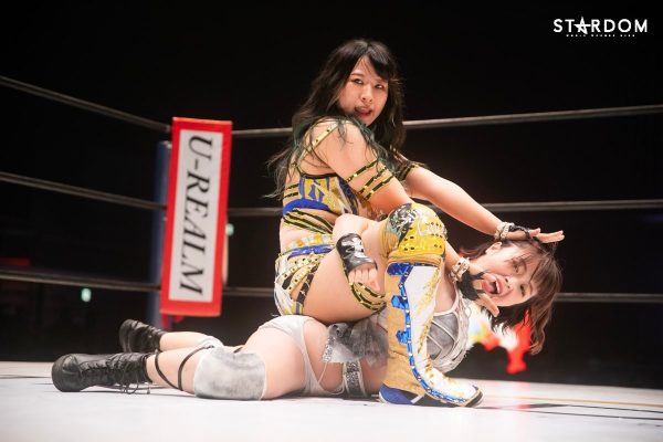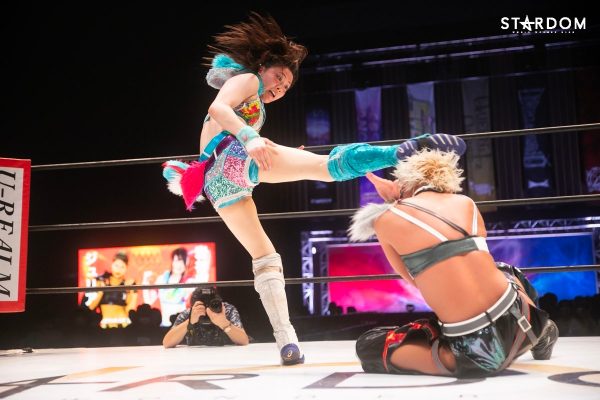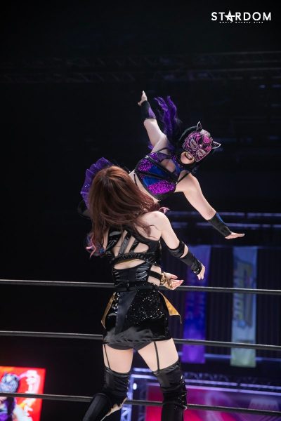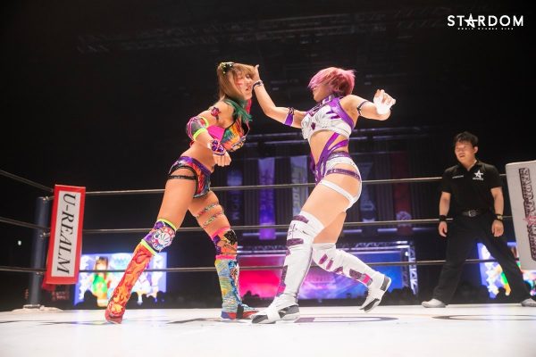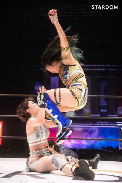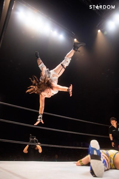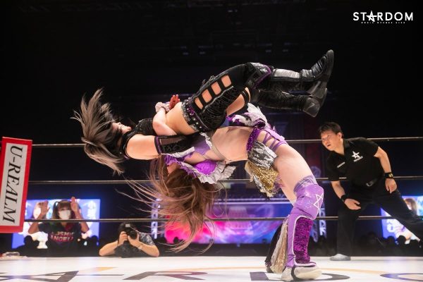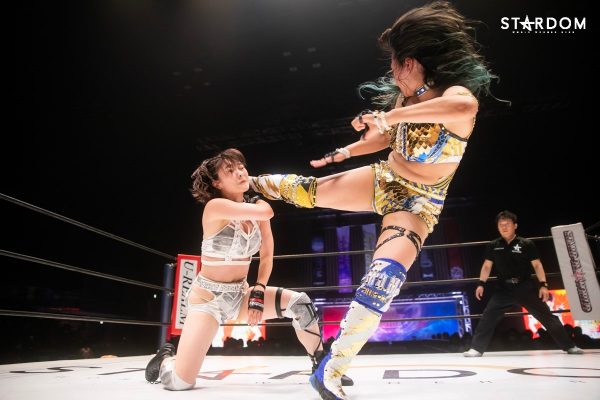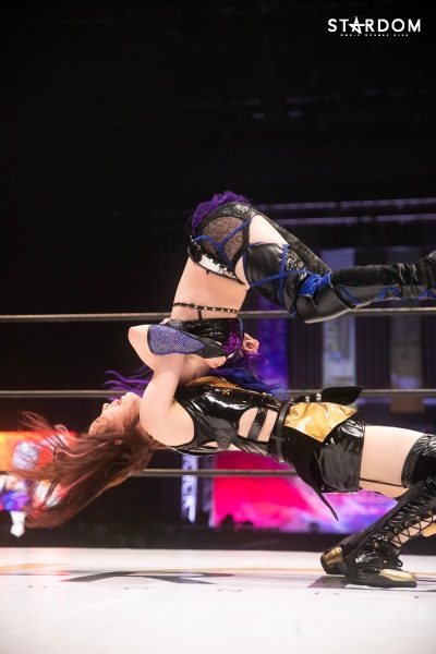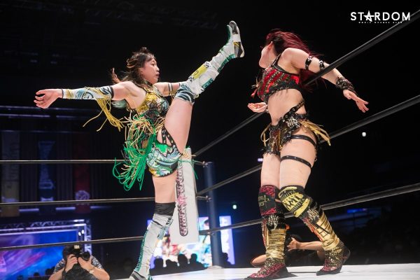 ともに前日に勝利を挙げた朱里と舞華がドンナ・デル・モンド同門対決。朱里は上谷沙弥、舞華は林下詩美と両者ともクイーンズクエストを破っての2日目となる。5★STAR GP優勝であらためて赤いベルト取りに乗り出したい朱里と、シンデレラ・トーナメント制覇をあと一歩で逃し、「スターダムの女帝」への道を再び歩み出した舞華。目標達成のために、どちらも負けたくない一戦である。