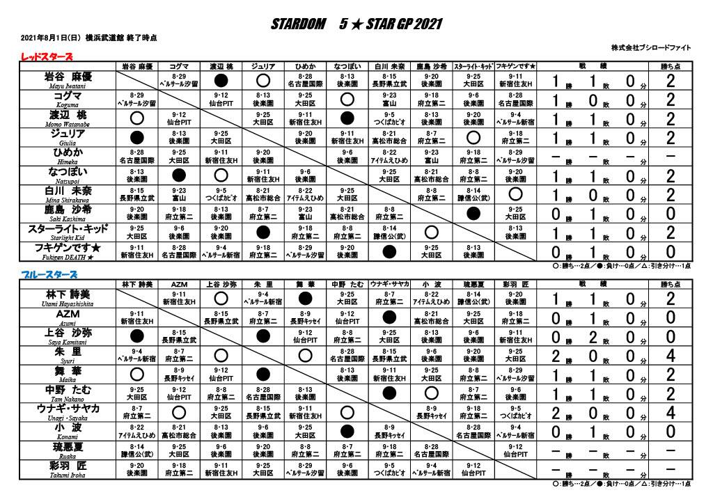 ◆5★STAR GP 2021 レッド・スターズ公式リーグ戦 20分1本勝負 |