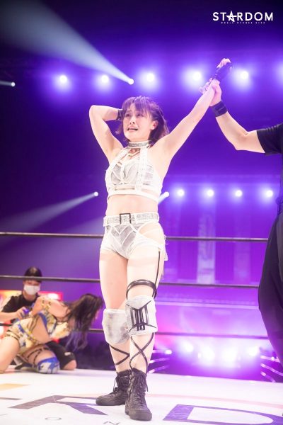 岩谷「横浜武道館の皆様、こんばんはー!! 1年に一度の熱い5★STAR開幕しました。昨日は桃に負けてしまったんですけど、今日は無事に、無事ではないんですけど、ジュリアに勝ちました! このままこの勢いのまま必ず、自分が勝ち抜いて、5★STAR2回目の…2回目、2連覇ではない、です。2018年の5★STAR優勝者として、今年も2021年、必ず勝ち抜いて、自分が優勝したいと思います。今日はメインイベント、自分が勝ったので締めさせていただきたいと思います。本日は本当にご来場いただきましてありがとうございました。PPV見てくださってる皆さんもありがとうございました。これからもスターダム突っ走っていくんで、応援よろしくお願いします。いまを信じて明日に輝け、ウィー・アー・スターズ!」