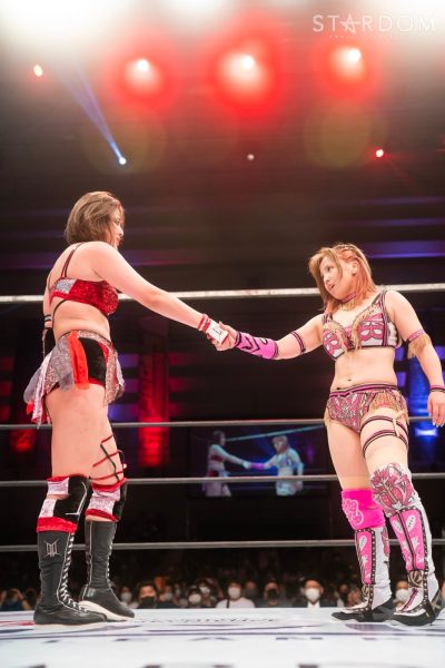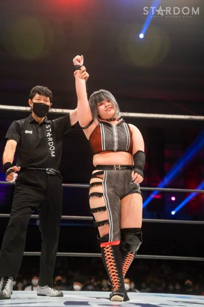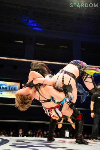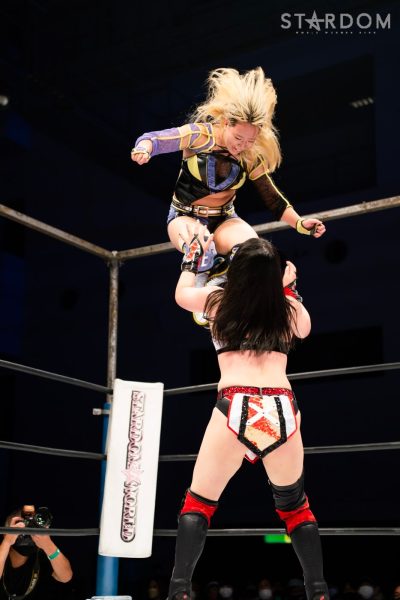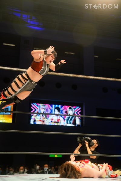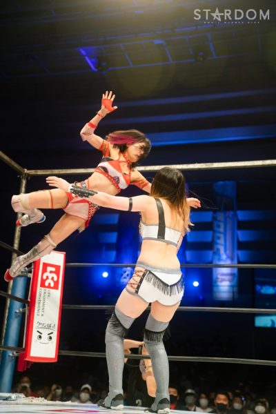 記者会見での遺恨が残るドンナ・デル・モンドのひめかとCOSMIC ANGELSの白川未奈が一騎打ち。リング上ではアーティスト・オブ・スターダム王座をめぐり何度も闘ってきた両者だが、シングルマッチは珍しいだけに、注目の顔合わせとなる。