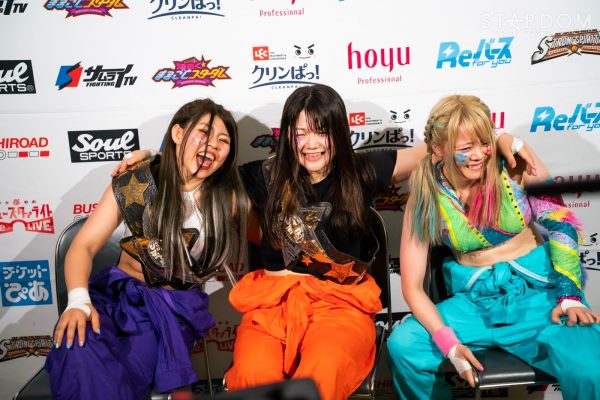 葉月「おいキッド、ブラックデザイヤーとFWCは、やらないよ。でも、これトリオでしょ? 3人だからFWCでもないし、お前らはブラックデザイヤーでもない。大江戸隊vsSTARSの闘いだから。ですよね? キャプテンフォールマッチで私たちがしっかり勝って、アナタたちが持ってるアーティストのベルトに挑戦させていただきます。よろしくお願いします。ってことで、今日はSTARSが勝ったので、STARSが締めてもいいですかーーー? の前に麻優さん、ひとことお願いします!」