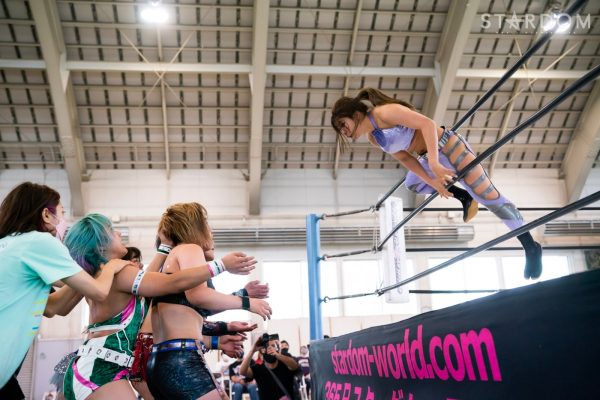 クイーンズクエストの上谷沙弥&レディ・C組とドンナ・デル・モンドのジュリア&舞華組と激突。上谷と舞華は5月の福岡大会でワンダー・オブ・スターダム王座を争った。舞華とレディは前大会(7・14旭川)での3WAYマッチで対戦、舞華がレディをフォールしている。レディとしては雪辱を期しての試合でもあるが…。