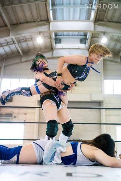 ゴッズアイの朱里&MIRAI&壮麗亜美組とSTARSの葉月&コグマ&飯田沙耶組が6人タッグマッチで激突。ゴッズアイは北海道シリーズ3試合すべてで6人タッグマッチに登場。2日前の旭川ではクイーンズクエストの林下詩美&上谷沙弥&AZM組と時間切れで引き分けた。第2戦はSTARSとの対戦となる。STARSは岩谷のいない葉月&コグマ&飯田組の布陣。葉月をリーダー格に、葉月&コグマのゴッデス・オブ・スターダム王者を擁するSTARSが赤いベルトの王者・朱里を中心とするゴッズアイにどんな闘いを挑むか。もちろん、この試合は7・24名古屋でおこなわれるゴッデス王座戦の前哨戦でもある。前回のタイトルマッチでは葉月&コグマ組とMIRAI&壮麗組が30分闘い抜いて引き分けた。決着戦を前にどんな駆け引きが展開されるか?