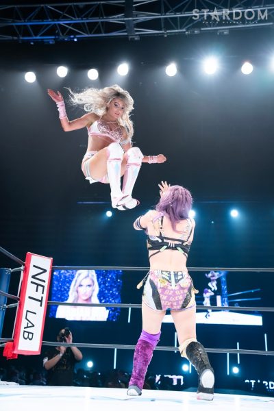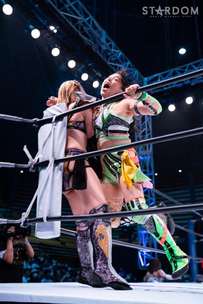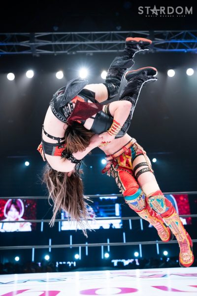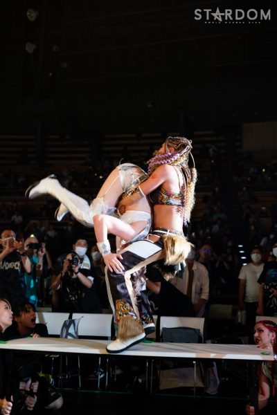 ハイスピードの名手であり、QQの中心人物でもあるAZMと、ゴッデス・オブ・スターダムのベルトを白川と共に腰に巻き、クラブビーナスをけん引するマライア。羽南と同じく出場権をランブルで獲得し、来日の目的の一つとして5★STAR GP出場を掲げていただけあり、気合は十分だ。
