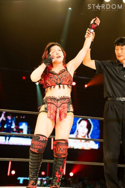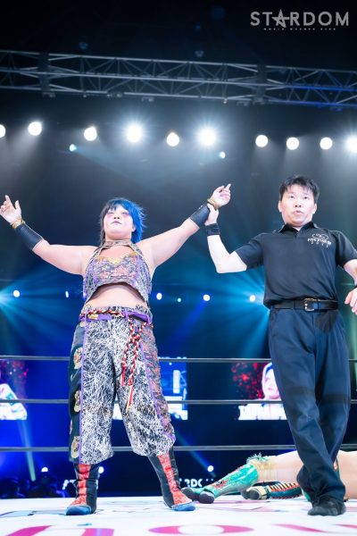 鈴季が礼儀正しく握手を求めるが、応じた朱里の手を引っ張ってゴングが鳴る前にテキーラショット、続いてジャーマンスープレックス。朱里はカウント2で返す。ロープ越しに鈴季は花道にブレーンバスター。「5★STAR優勝するぞ!」の雄たけびを上げ、場外の鉄骨に朱里を拘束して頭部にキック。朱里は鈴季に反撃、エプロンから場外のマットにDDTで鈴季を叩きつけ、鈴季の背中と前に何度もキックで叩き込む。コーナーに追い詰めた鈴季に連続ストンピングからランニングで串刺しニー。朱里は腕固めで鈴季を攻めるもエスケープ。しかし鈴季はコーナーに上った朱里にハイキック。朱里はロープにもたれてエプロンにジャーマンを狙う。阻止されるが、再度ジャーマン。リング外へ。鈴季はダメージの抜けきらない朱里をリングに戻して後ろからニー。強烈なエルボーの打ち合いに。鈴季が打ち勝つも、朱里のミドルキックを三度もらってダウン。朱里のジャーマンを受けながらも鈴季は立ち上がり、お返しとばかりにジャーマン。すずが朱里にキックを三発、しかし走りこんできた鈴季に朱里のカウンターのハイキックが入り、次のキックは相打ちに。鈴季がドルフィンバスター。朱里が鈴季にスリーパー。鈴季はギリギリでエスケープ。朱里の斬首をまともに食らうものの、グラン・マエストロ・デ・テキーラで朱里をフォール。スリーならずもすかさずテキーラショット。ジャーマンを食らった朱里が反撃のランニングニー。朱里は鈴季をキャッチしてコーナーに頭から平行に突き刺し、バズソーキックから朱世界。激闘を制したのは朱里だった。