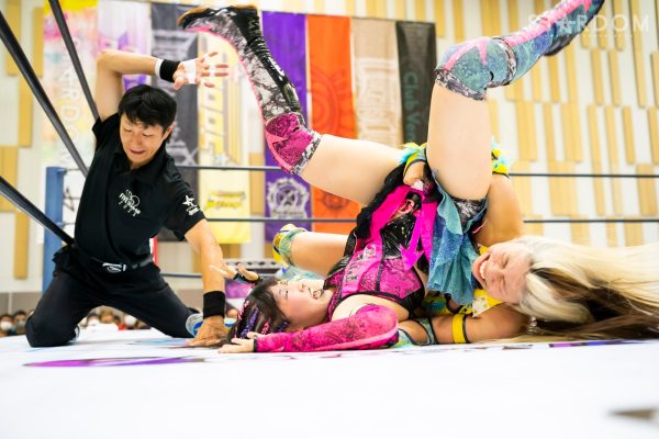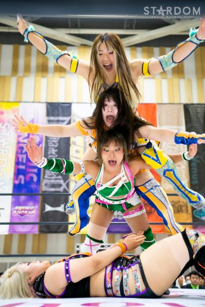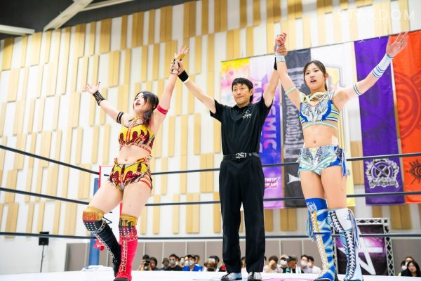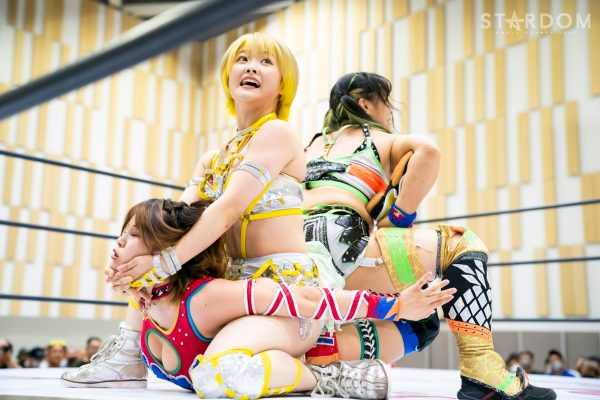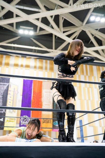 マライアがいきなりなつぽいにビッグブーツ。ダブルアームの構えをこらえたなつぽいにマライアがチョップ。月山が入り左右からドロップキックを叩き込む。月山がなつぽいにヒップバット連打。なつぽいが返すと、月山はボディースラム狙い。なつぽいがこらえてヘアーホイップの連続。レフェリーが注意もなつぽいは「(髪の毛を)持ってない!」と主張を続ける。水森が月山に逆エビ固め、なつぽいもキャメルクラッチでこれに加わる。水森がボディープレス、なつぽいが背中にドロップキック。月山が返すとエルボー連打、なつぽいが受けて立ち、一発で倒す。月山はラリアットをかわしドロップキック。マライアがなつぽいにドロップキック、旋回式バックブリーカー。なつぽいが返すと、マライアが逆水平連打。なつぽいがバックキックからネックブリーカー。水森がマライアにエルボー連打、ドロップキック。水森の突進を月山が妨害しマライアがドロップキック。なつぽいのトラースキックから水森がショルダースルー、「60・7キロ」ダイビングボディープレス。2発目狙いでコーナーに上がると月山が止めてマライアが雪崩式フランケン、ミサイルキック。水森が返すと、マライアがパイルドライバーの体勢。なつぽいがカットし水森が丸め込みの連続。マライアが返すと水森がラリアット狙いもスリングブレイドを食らう。マライアは「オワリ!」を宣言も水森が切り返す。しかしマライアがあらためてパイルドライバー。水森が返せずマライアがピンフォール勝ち。