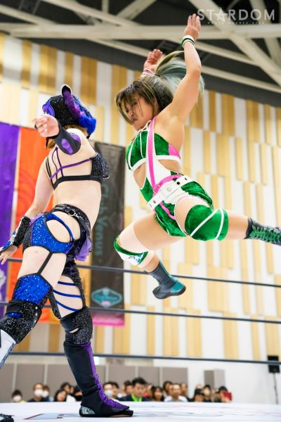 2勝1敗1引き分けの岩谷麻優と3勝2敗の刀羅ナツコが5★STAR GP公式戦。どちらもひとつの勝ち越しであり、どちらも白星を上乗せしたい闘い。久しぶりの一騎打ちで勝利を手にするのはどちらか?