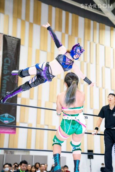 NEW BLOOD10でコズミックエンジェルズ昇格査定マッチをおこなったなつぽいと水森由菜がタッグを結成し、マライア・メイ&月山和香組のクラブビーナスと対戦する。8・18品川ではなつぽいに肉薄も、目標体重を達成していないこともあり不合格を言い渡された水森。しかしこの日は通常通りコズエン見習いとして組むだけに、献身的ファイトが求められる。一方のクラブビーナスはマライア&月山組という布陣。こちらも月山がNEW BLOOD10でフューチャー・オブ・スターダム王座に挑み健闘したがタイトル奪取はならず。その月山の奮闘がキーポイントになりそうだ。