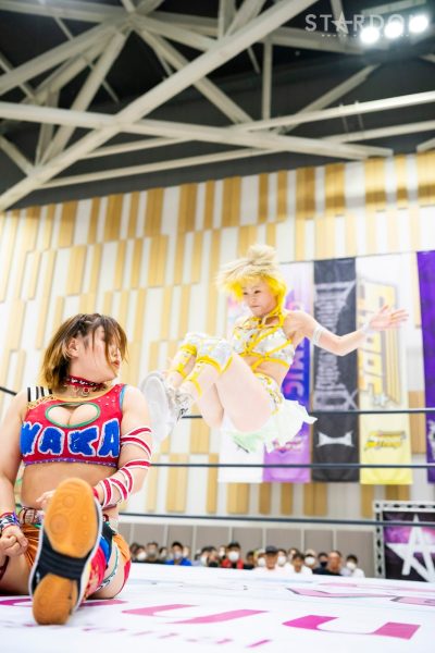 STARSのコグマ&羽南&飯田沙耶組と大江戸隊のスターライト・キッド&琉悪夏&吏南組が6人タッグで全面対決。若い力の躍動が勝負の行方を左右しそうだ。