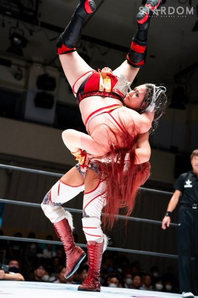 安納サオリとMIRAIが5★STAR GP公式戦で初遭遇。ワンダー・オブ・スターダム王者MIRAIに安納が挑む図式でもあり、安納はMIRAIも巻いていたゴッデス・オブ・スターダムの現王者だ。安納はこの試合を終えればあとは最終戦9・30横浜での白川未奈戦を残すのみ。五分で迎えるか、それとも脱落した状態で白川に対するかで状況は大きく異なってくるだろう。また、シンデレラ・トーナメントとの春夏連覇を目指すMIRAIも絶対に落とせない公式戦だ。