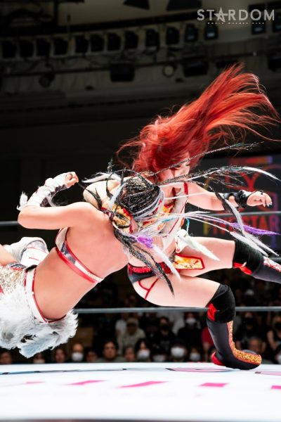 腕の取り合いからグラウンドへ。ブレイクするとロックアップ。舞華がロープに追い込みロープワークへ。ジュリアが組み付いて変型卍固め。舞華が入れ替えて後方に投げ捨てる。場外に出たジュリアが舞華を客席に投げつける。ジュリアはイスで殴打し、重ねた椅子の上に投げようとするが反対に舞華がブレーンバスター。舞華は14カウントでジュリアを戻し、エルボーの打ち合い。ジュリアがSTF、頭部へドロップキック、串刺しエルボーアタック。コーナーに上がると舞華が追いつき雪崩式ブレーンバスター、さらにブレーンバスターを連発する。ジュリアが返すと、舞華がラリアット、山茶華。返したジュリアに舞華は炎華落とし狙い。ジュリアが切り返しジャーマン。ジュリアのニーを舞華がつかんでマットに叩きつける。炎華落としを決めるがジュリアが返す。舞華はみちドラ狙いもジュリアが切り返し監獄固め。舞華が張り手を見舞うとジュリアも張り返す。フロントネックロックと複合させギブアップを迫るジュリアだが、舞華がエスケープ。ジュリアがスープレックスで叩きつけるが2カウント。引き起こされた舞華がエルボー、パワーボム。ジュリアが返すと、舞華はみちドラ狙い。ジュリアがこらえると舞華がエルボー、ラリアット。ジュリアがかわしバックドロップ。舞華がすぐに立ち上がると丸め込み。10分経過。エルボーが連続して交錯。ジュリアが打撃の連打で舞華がダウン。ジュリアはフィニッシュを宣言しグロリアスドライバー。舞華は1カウントで返すがニーを食らう。ジュリアは舞華をコーナーに乗せて雪崩式ダブルアームスープレックス狙い。舞華がヘッドバット、ジュリアが張り手、雪崩式ダブルアームスープレックスをトップから決める。そしてノーザンライトボムへ。舞華が返せずジュリアが3カウントを奪ってみせた。
