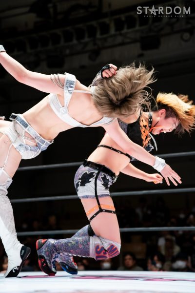 マライア・メイ&月山和香組のクラブビーナスと星来芽依&メーガン・ベーン組がタッグマッチで対戦。マライアとベーンの外国人対決に、星来のスピードが合流。タッグを続けることで合体技も出てきたメーガンと星来のコンビネーションも見どころとなりそうだ。