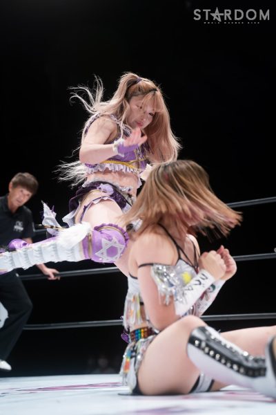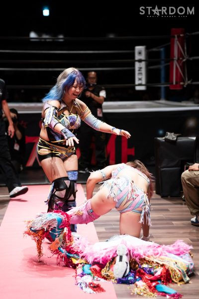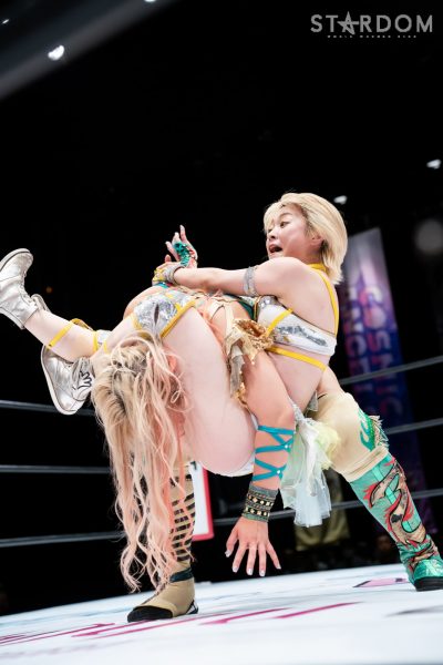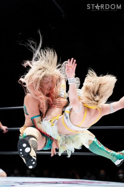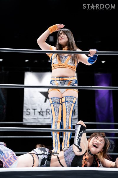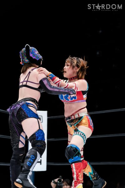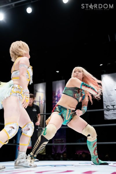 中野たむ&水森由菜組と鈴季すず&星来芽依組のタッグマッチ。コズミックエンジェルズの中野と水森は前日の佐賀大会に引き続いてのタッグ結成。佐賀では舞華&メーガン・ベーンに敗れてしまったが、この試合で前日の敗戦を払拭したい。正式メンバーを目指す見習いの水森がフリー参戦の鈴季&星来組を意識するのは当然とあって、より激しい闘いが期待できそうだ。また、中野たむが保持するワールド・オブ・スターダム王座を虎視眈々と狙う鈴季は5★STAR GP公式戦で中野から勝利。この試合でも中野から白星を挙げれば、より挑戦が現実的なものになるだろう。鈴季&星来組はゴッデス・オブ・スターダムタッグリーグ戦にも出場するだけに、リーグ戦を意識した闘いにもなりそうだ。