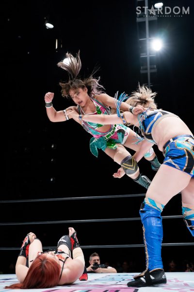 中野と星来が先発でスタート。ロックアップからバックを取り合い星来が足を踏みつけサッカーボールキック、中野がやり返しサッカーボールキックを打ち込む。中野のバックドロップを星来が切り返す。中野は水森を呼び込みクロスボディーの連続、ボディープレスの合体を狙うが鈴季が足を出して阻止してみせる。鈴季と星来が合体して分断、連係で水森を攻め立てる。水森が返すと、星来にショルダースルー。中野が星来にダイビングボディーアタック。星来が鈴季を呼び込むが、中野が次々と串刺し攻撃、まとめてDDTで叩きつける。星来が返すと丸め込みから顔面へドロップキック。鈴季がリング下からエプロンの中野にドロップキック。鈴季がコーナーに上がると水森がカットし中野がデッドリードライブ。しかし鈴季が中野にフェースクラッシャー。中野がバックドロップ、ニーアタック。水森が鈴季にラリアット、フライングショルダータックル。鈴季が丸め込むと星来がドロップキック。中野がカットし水森が丸め込むが鈴季が返す。水森は鈴季にエルボー連打。鈴季のエルボーを食らうも水森がハリケーンドライバー。水森はコーナーに上がり、ダイビングボディープレス。かわした鈴季が背後からニーアタック、バックドロップ。フルネルソンの構えに星来がコードブレイカーで合体。星来が中野にドロップキック、コードブレイカー。鈴季が水森にテキーラショット狙い。水森がこらえるが鈴季がトラースキック連打。水森がかわしてラリアット。鈴季がジャーマン、テキーラショット。水森が返せず鈴季が3カウントをゲットした。