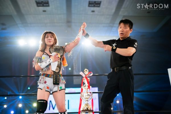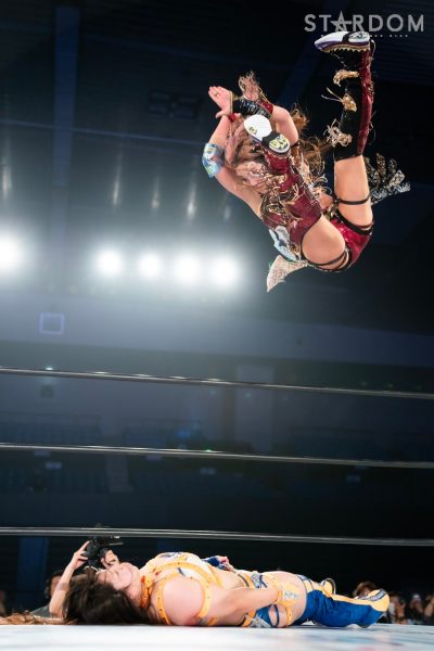 鹿島が試合前にやる気満々のシャドーボクシングと思いきや、ゴングが鳴るとリングに寝そべる。鹿島は星来を誘ってその体勢から手を差し出す。星来が応じると手を引いて起死回生狙い。星来が切り返すと鹿島はリング下。星来が追いかけるとすぐに戻って星来を走らせる。星来が飛びついて丸め込むが2カウント。鹿島は再び寝そべるとフットスタンプをかわしていく。星来が蹴飛ばし髪を引いてロープに振ろうとする。鹿島はロープブレイクを主張。星来がダッシュすると鹿島がロープにかけて蹴り上げる。鹿島は腕を蹴り上げ顔面を踏みつける。星来が向かっていくと鹿島は側頭部を蹴り上げて挑発。鹿島は「鹿島沙希、走るぞ!」と宣言しダッシュ。星来もダッシュしネックブリーカー。星来のブレーンバスター狙いを鹿島が切り返す。星来はコードブレイカーからブレーンバスター。鹿島が返すとエルボーの応酬。星来をかわして鹿島が昇竜拳、コーナーでミドルキックの連打、昇竜拳。5分経過。鹿島がコーナーに上がりダイビングフットスタンプを決める。星来が返すと、鹿島はダブルアーム式フェースバスター。星来がカバーを反転し丸め込む。マイエンブレム狙いを星来が切り返しドロップキック。星来のボディーアタックをかわし鹿島が蹴り上げると起死回生。星来が切り返し丸め込むと3カウント。星来が新王者となった。